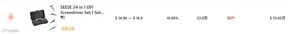 近期,TikTok美区一款24合1多功能螺丝刀套件周销量环比激增146%,跃居五金类目第三。该产品契合工具向时尚单品转型趋势,叠加美国复活节DIY热潮,在消费信心回落背景下推动消费者倾向自主动手。