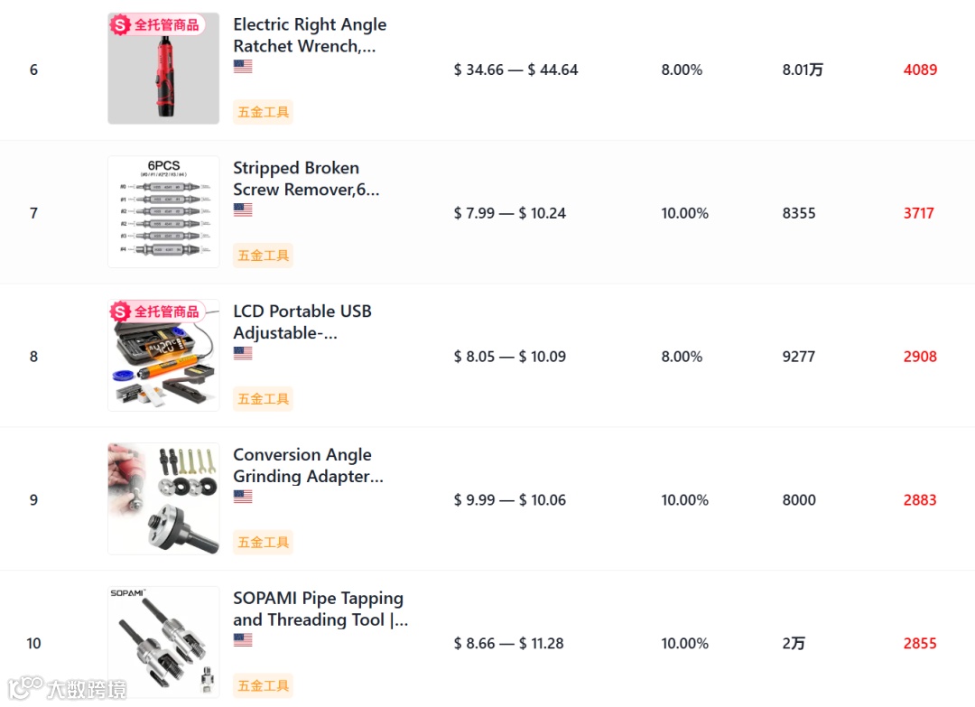 五金工具热销TOP10产品普遍采用"多合一"卖点。配件类均价10美元,工具类20美元以上,契合消费者预算。其多功能特性与可重复使用优势,有效满足用户"应急保障"心理需求。