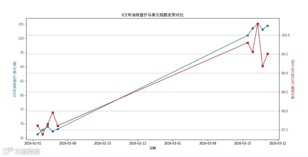 伊朗袭击卡塔尔拉斯拉凡工业城(全球最大LNG枢纽之一),导致双生产线停摆且修复期超三年。全球天然气供应骤减,欧洲能源安全风险急剧上升。叠加其对沙特、阿联酋的威胁,全球能源命脉遭受实质性打击。油价由此突破95美元,推动美元指数站上100关口。美元走强逻辑已变:并非美国经济强劲,而是能源净出口地位使其成为相对避风港,而欧日等进口国承受双重压力。