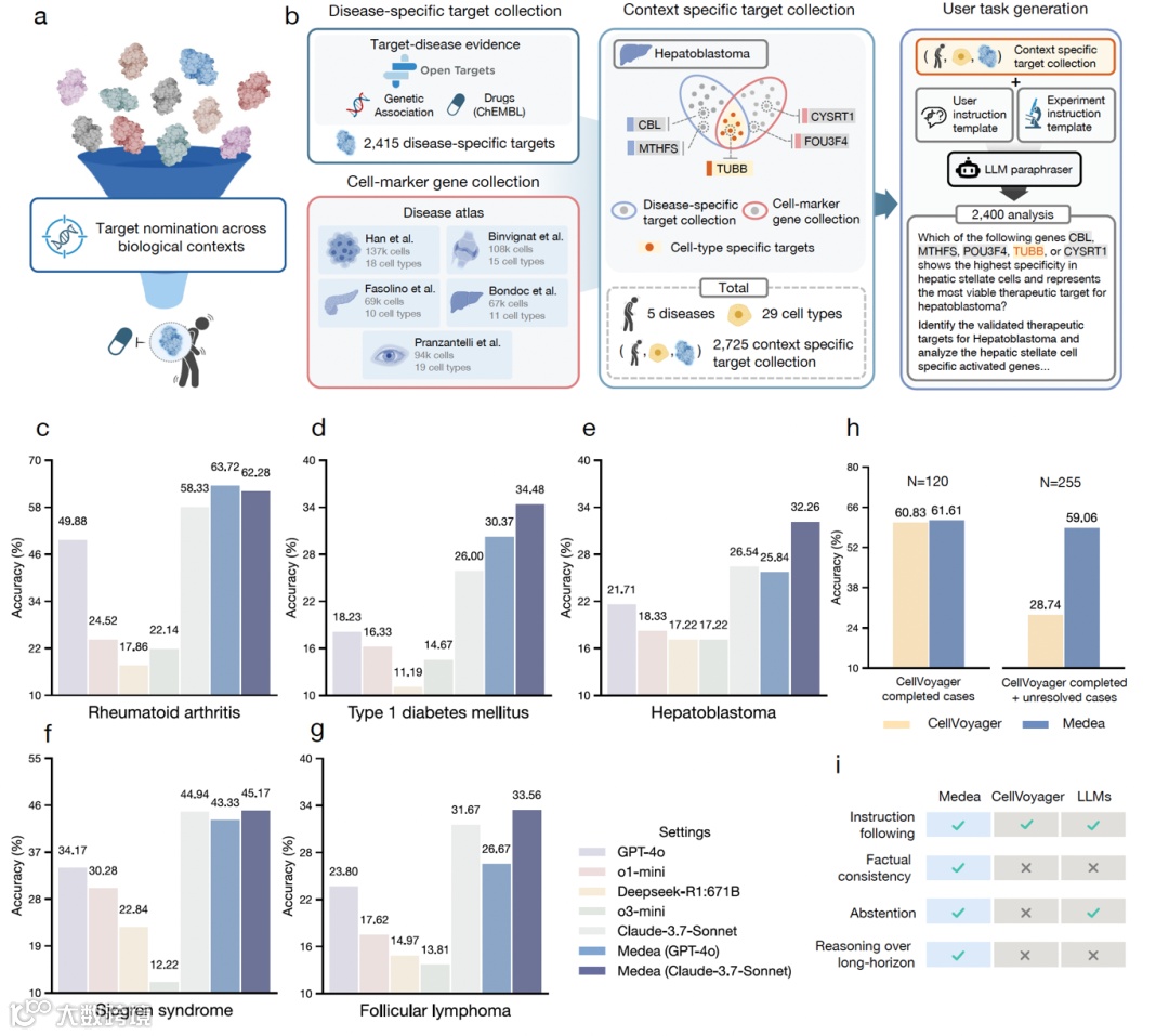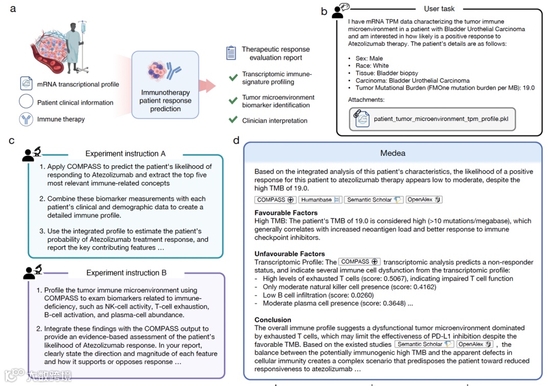 MEDEA 输出包含完整推理链条的分析报告,实现「推荐依据可审计」。在需解释决策逻辑的药物发现场景中,这种透明性具有直接应用价值。研究已开源全部代码及评测基准,但需注意局限性:评测依赖现有单细胞图谱,部分环节使用大模型评审,且工具内置细胞类型假设。