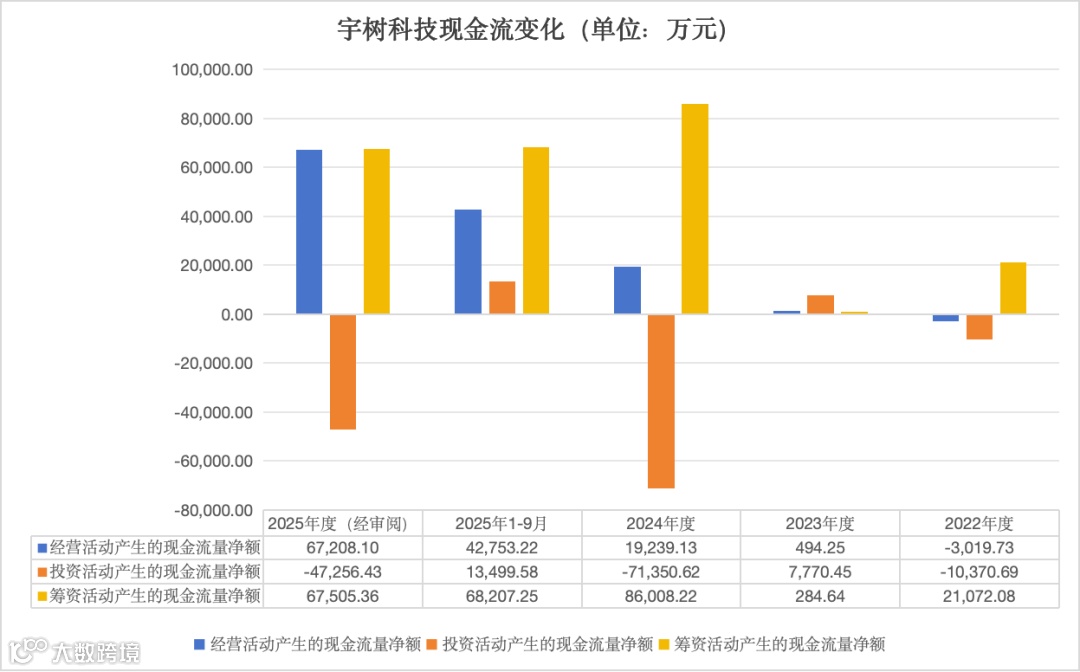 2025年前9个月,宇树经营活动现金流入13.24亿元,已超过同期筹资活动现金流入(7.95亿元),成为最主要现金来源,表明其已初步具备自我造血能力。