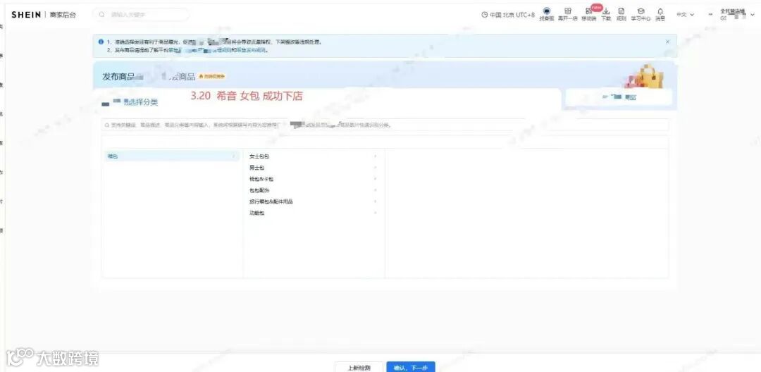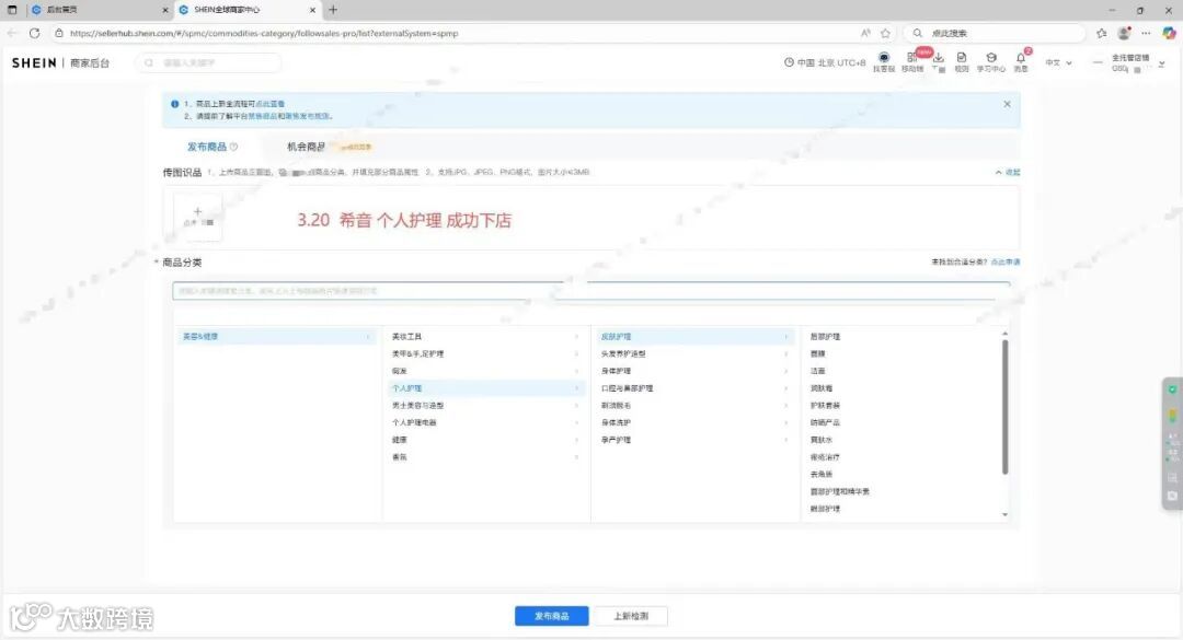 shein希音全托成功下店 个人护理,女包,宠物用品等类目