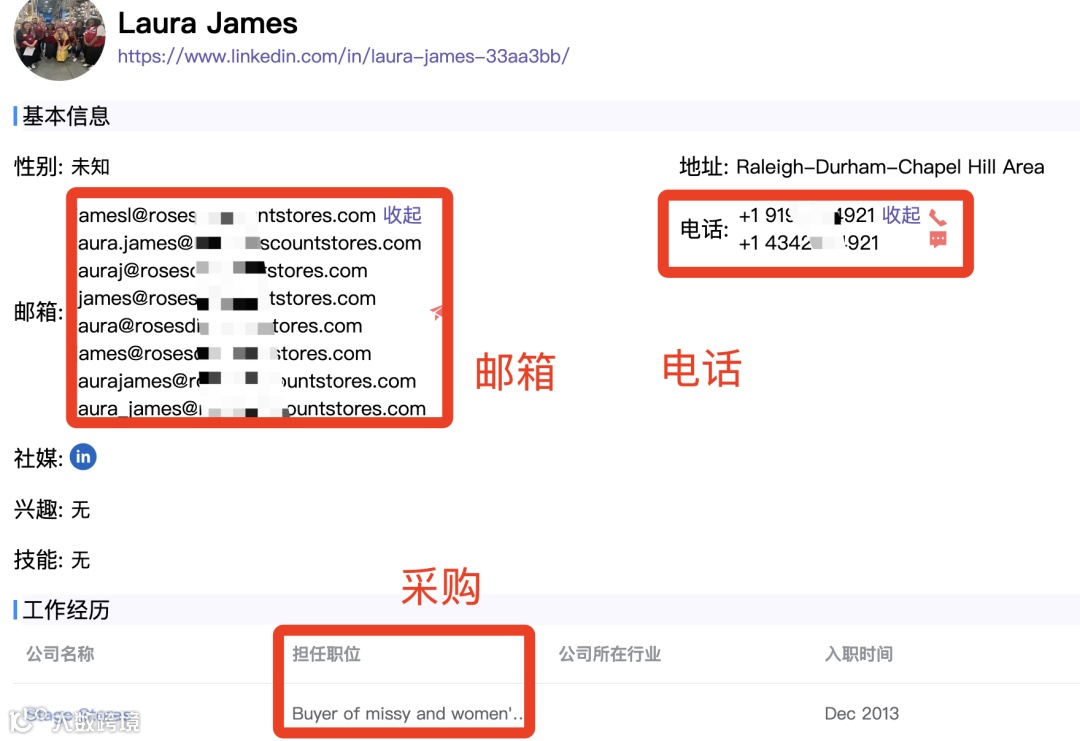 很多关键决策人通过上述的方式,或许能找到,可还是无法获得他们的 WhatsApp 和 Email 。这个工具整合了国外的企业数据库,Linkedin的API数据接口: