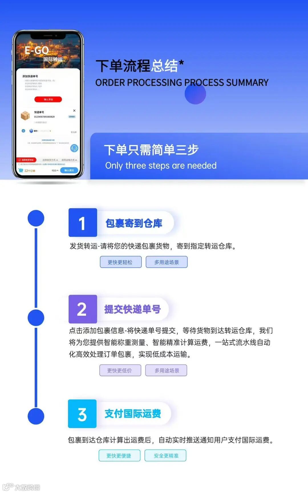 - 按实际重量计费,首重低至200克,消除“未满1公斤按1公斤收费”现象