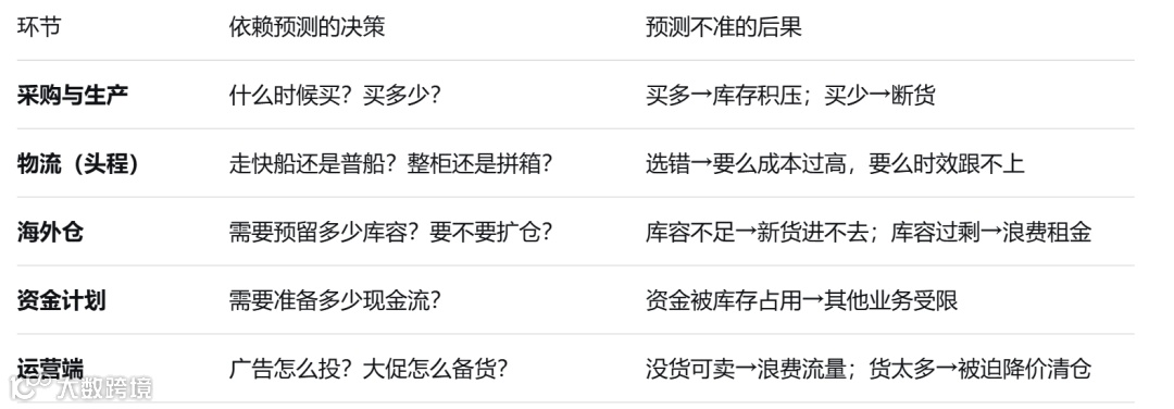 跨境电商供应链各环节的决策均基于未来销量预测,该数据是所有供应链环节的核心依据。若预测失准,后续决策将陷入盲目状态。