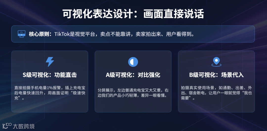 TikTok需通过画面传递卖点,具体执行策略: