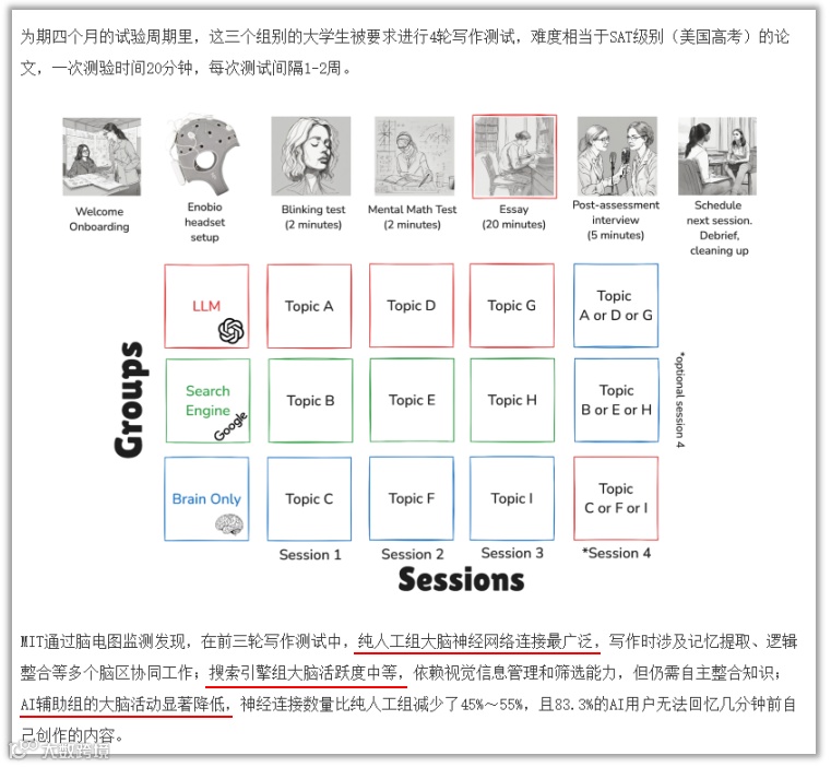麻省理工学院的研究更扎心:过度依赖AI可能导致“大脑活跃度降低、记忆保留能力减弱以及原创性思维衰退”。