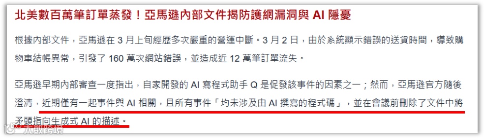 亚马逊电商一周内出了4次重大故障,内部文件一度指向AI编程助手闯的祸。工信部网络安全威胁和漏洞信息共享平台也监测发现,OpenClaw开源AI智能体部分实例在默认或不当配置情况下存在较高安全风险。