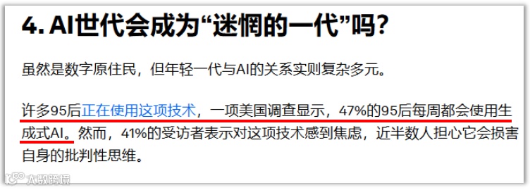 世界经济论坛2026年1月的报告指出,一项美国调查显示,47%的95后每周都会使用生成式AI。
