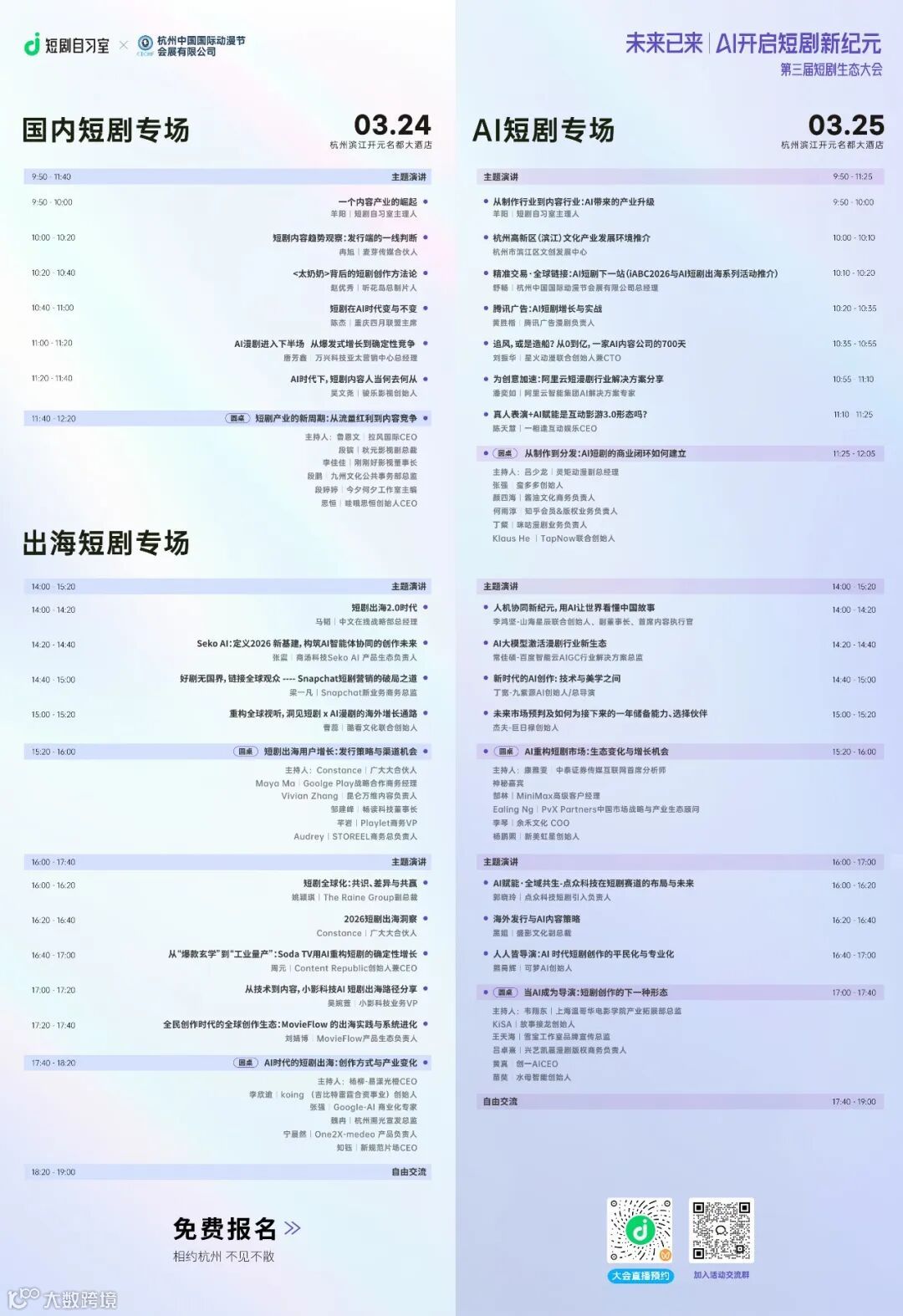 我们期待在杭州与您相见,共赴这场短剧行业的春日之约!如有任何紧急事宜,欢迎随时联系会务组。