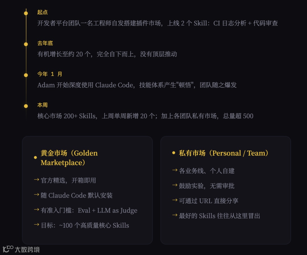 Uber 对 Skills 的采用始于一名开发者自发创建了一个插件市场,此后迅速扩展,涵盖大量技能。
