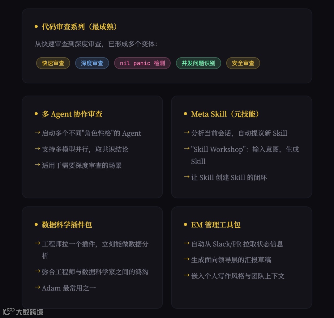 Uber 将专项 Skills 用于代码审查、多 Agent 协作,甚至用于创建其他 Skills。