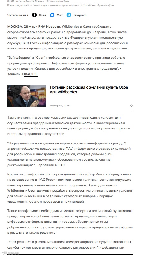 4月3日是整改截止日期,FAS的要求直指平台运营核心:终止歧视性条款、降低不合理佣金、规范价格机制。此举将重塑俄罗斯电商生态,直接影响数百万国内外卖家的经营空间。