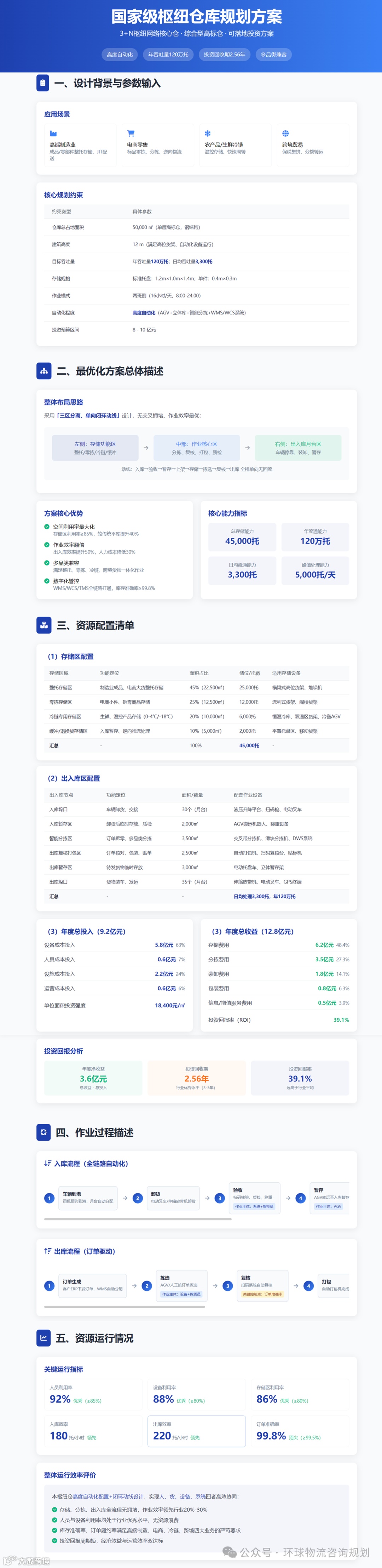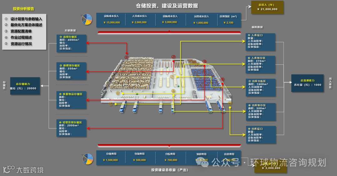 - 资源配置清单:划分存储/出入库区域,列明设备与投资数据