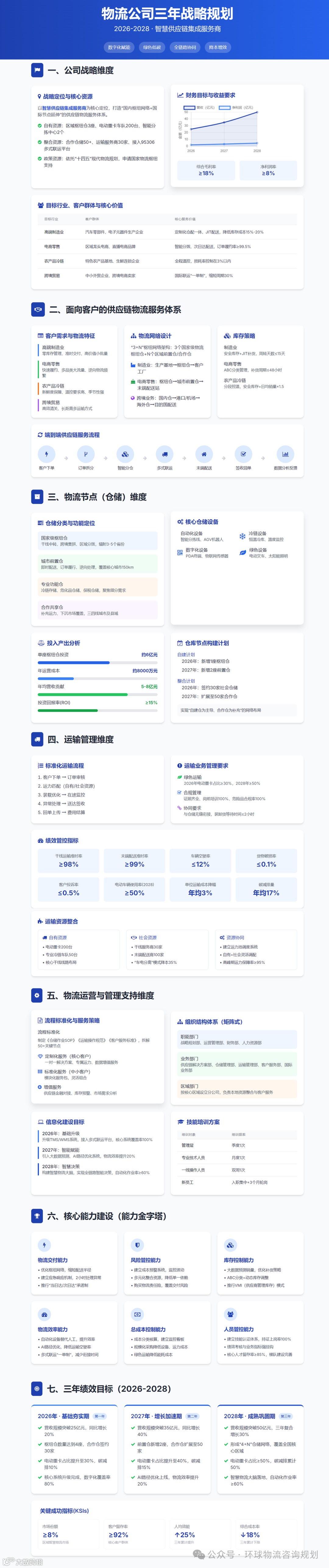 基于以下物流公司模型框架,生成可落地的战略规划方案,需覆盖以下核心维度:
