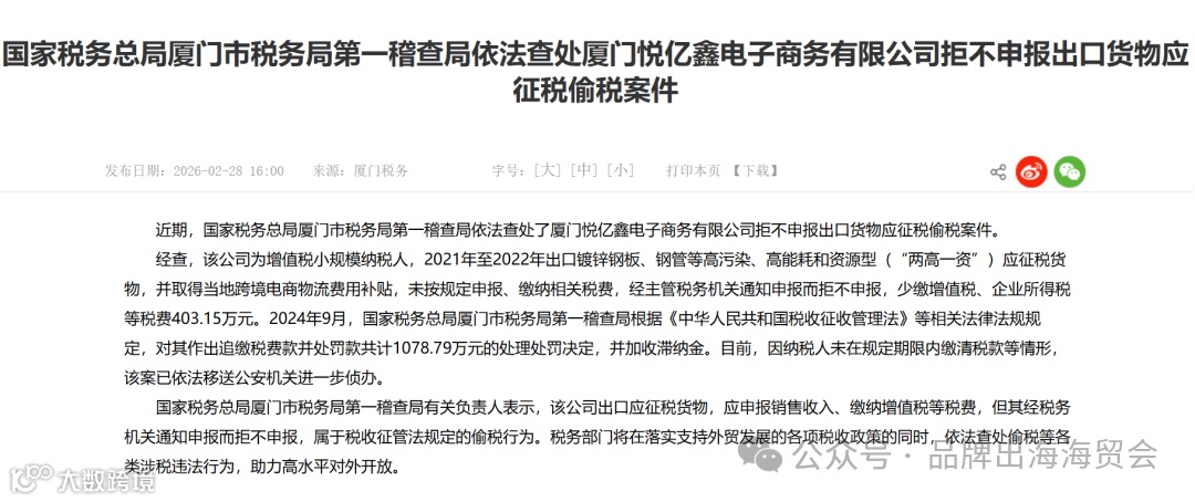 2026年跨境电商迎强监管:千万级税款追缴案敲响合规警钟