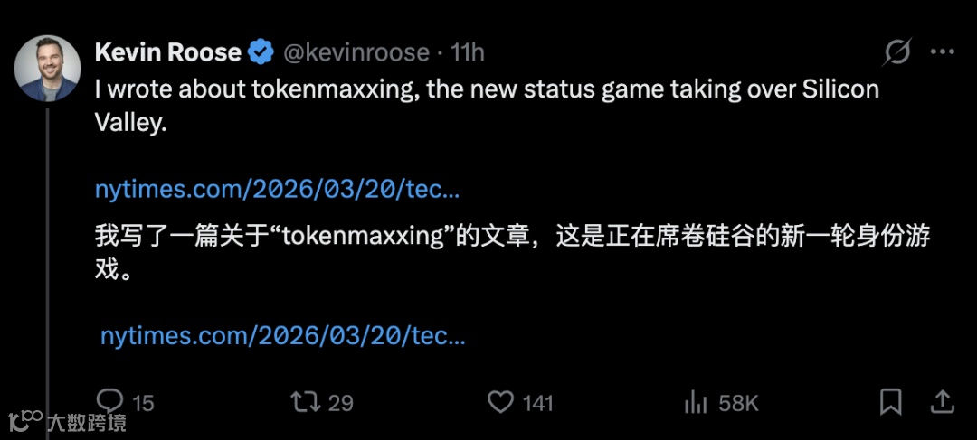 硅谷工程师一周消耗2100亿智元(Token),相当于30余个英文维基百科的内容量;另一案例显示,单月智元消耗账单高达15万美元。原本的技术计量单位已转变为职场新身份标识、第四薪酬支柱及生存KPI。《纽约时报》专栏作家指出,"智元刷满"(Tokenmaxxing)的身份游戏正在白领阶层扩散。