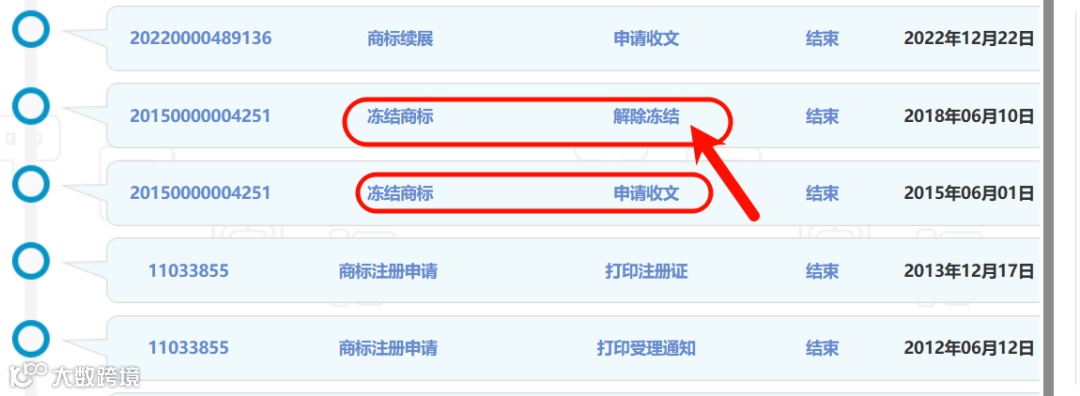 •官网查询:登录国家知识产权局商标查询系统,输入注册号,查看“商标状态”是否“解除冻结”。