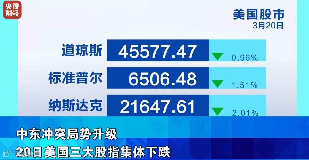 中东冲突局势升级 20日美国三大股指集体下跌
