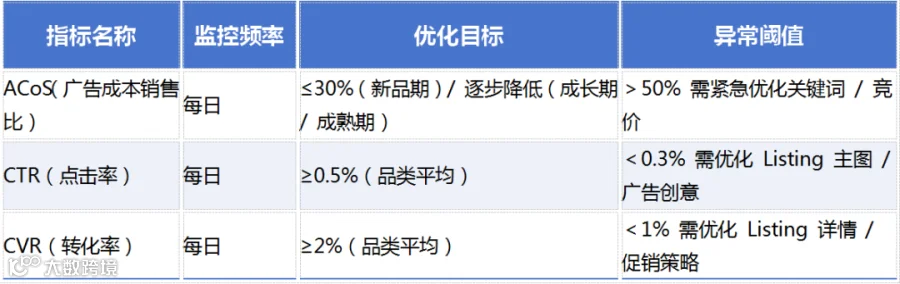 - 广告组合:优先优化商品投放(SP/SD),再布局品牌推广(SB);