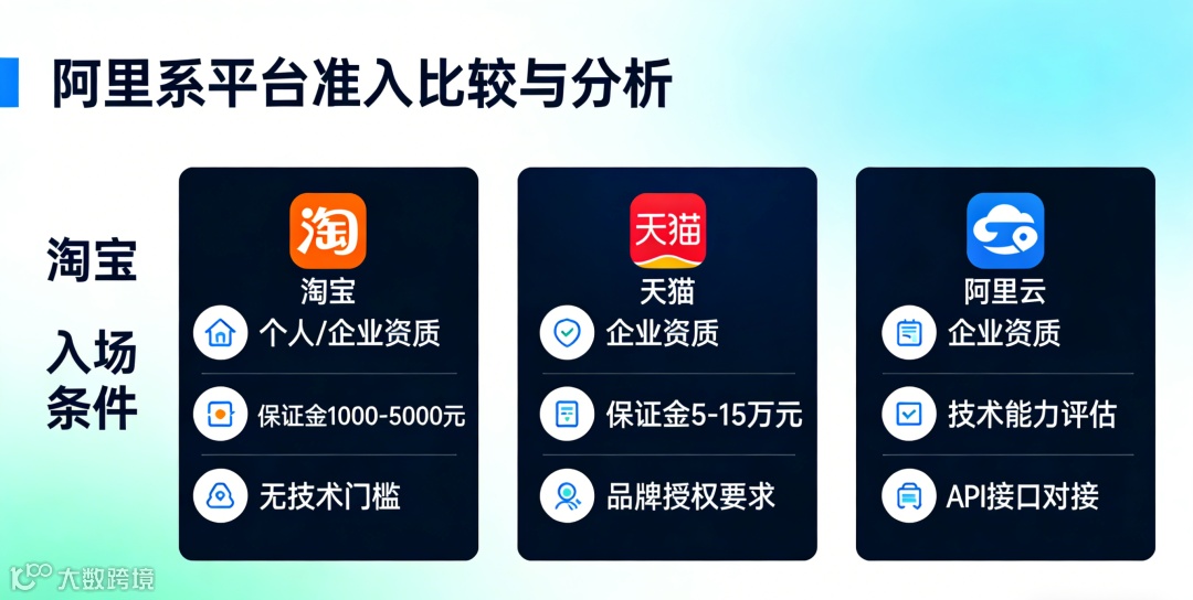 - B端平台(国际站/1688)重企业资质与履约保障,C端平台(天猫/淘宝出海)重品牌成长与流量获取。