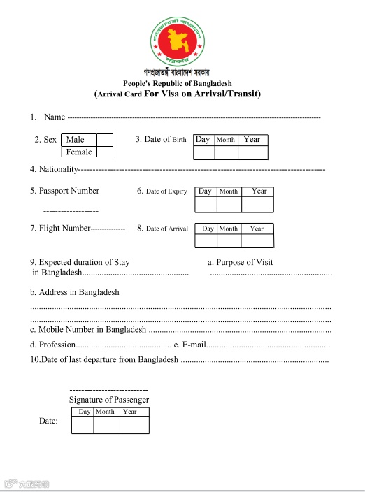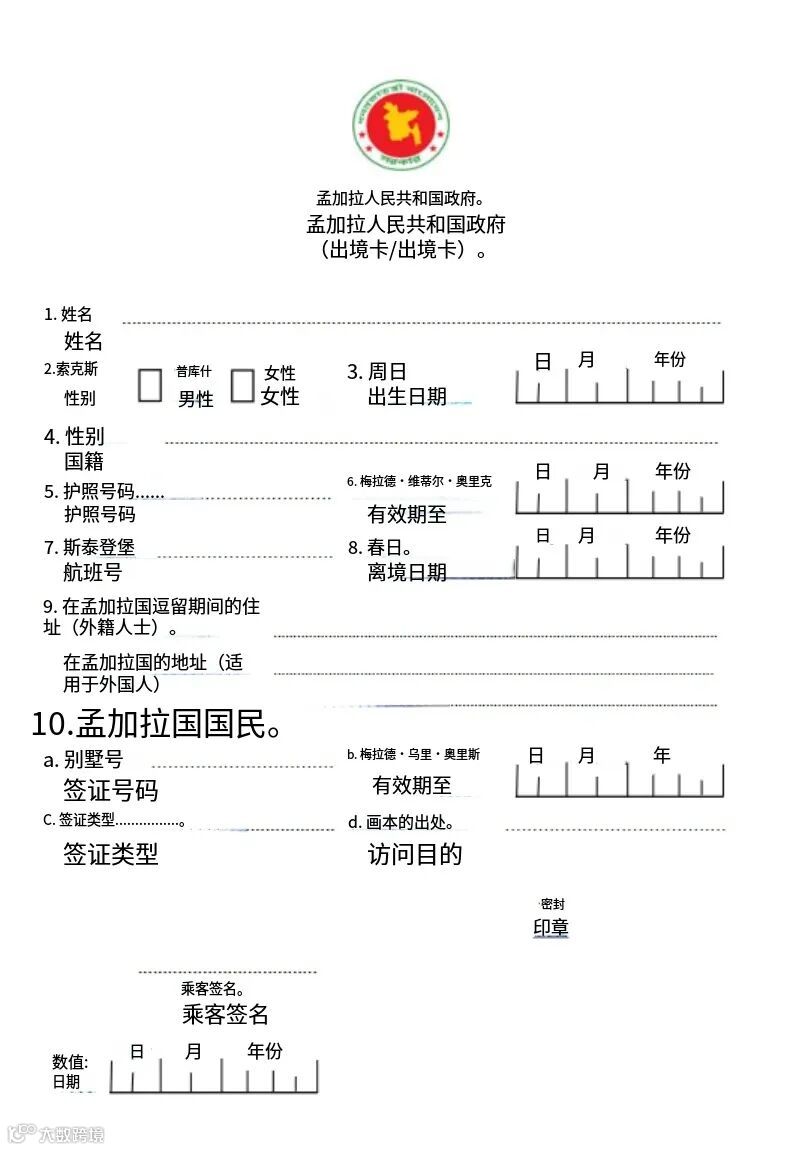 5. 入境单和离境单(现场填写,主要包含姓名、护照号、国籍、停留天数、联系方式等,本接待方可协助填写)。