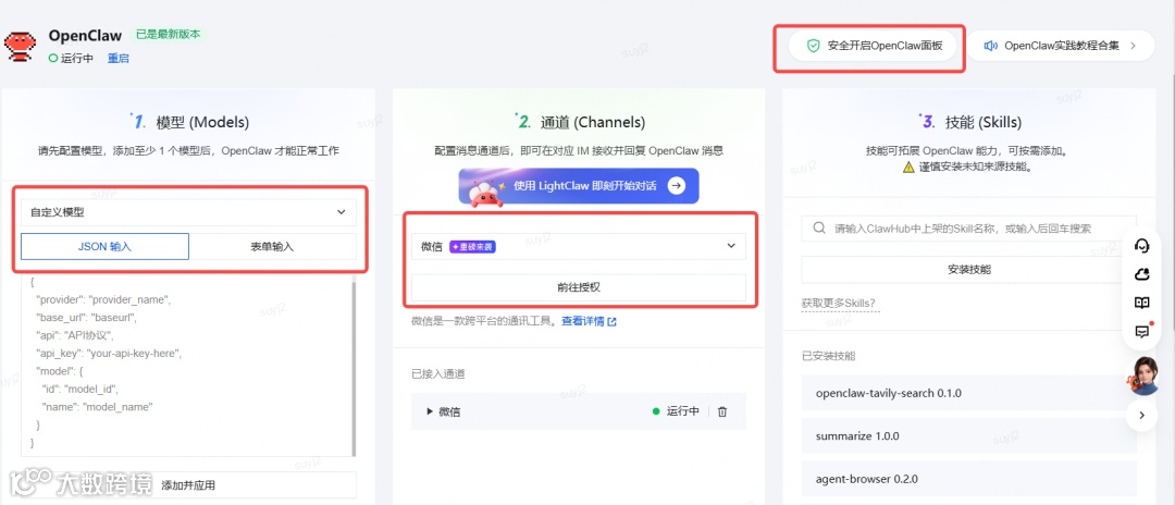 通过OpenClaw面板可使用浏览器访问管理界面。