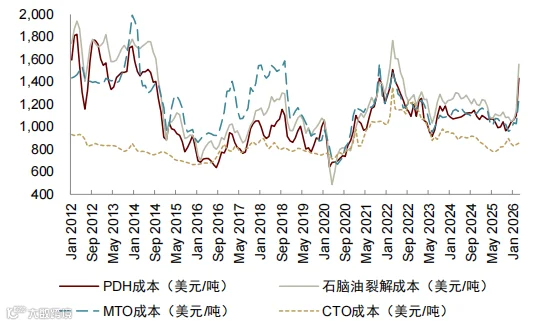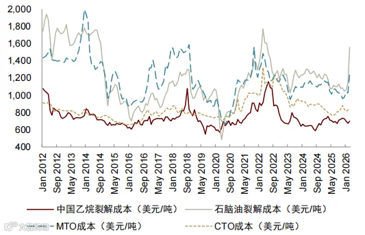 原油价格上行导致油煤价比达历史99.1%分位,煤制路线成本优势凸显。乙烯、丙烯等油头工艺装置负荷下滑,而煤制和乙烷路线因原料价格稳定,利润空间显著扩大。