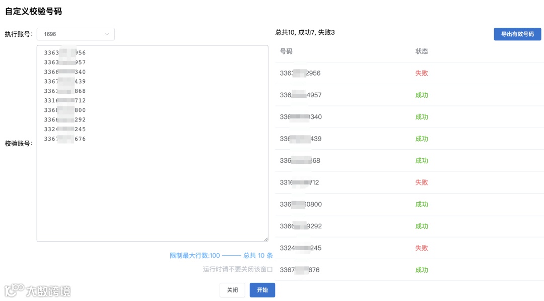 3. 号码验证:批量检测号码有效性,提升营销送达率。