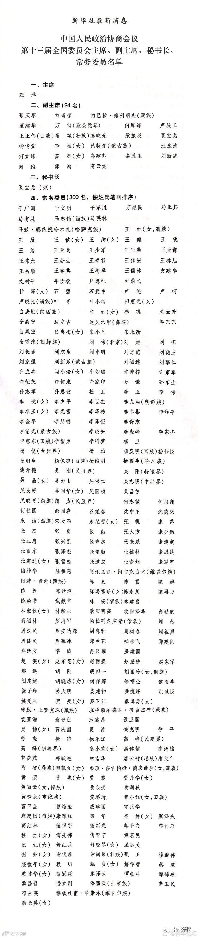 2018年3月14日下午3时,全国政协十三届一次会议在人民大会堂举行第四次全体会议,选举政协第十三届全国委员会主席、副主席、秘书长和常务委员。全国政协委员,中核集团董事长、党组书记王寿君当选政协第十三届全国委员会常务委员。
