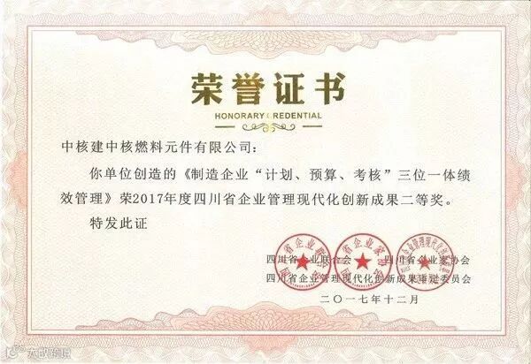 5月11日,2018年四川省企业管理创新大会在成都召开,会议以“以管理创新促进企业高质量发展”为主题,邀请了四川省政府有关部门领导及知名企业家、管理专家就如何提高企业管理现代化水平、助力适应经济发展“新常态”进行了经验交流和研讨。中国企业联合会企业创新工作部主任程多生作了题为“全国企业管理创新趋势”的专题讲座。会上,由中核建中总经理任宇洪等主创的《制造企业“计划、预算、考核”三位一体绩效管理》荣获2017年度四川省二等企业管理现代化创新成果并受到大会表彰。