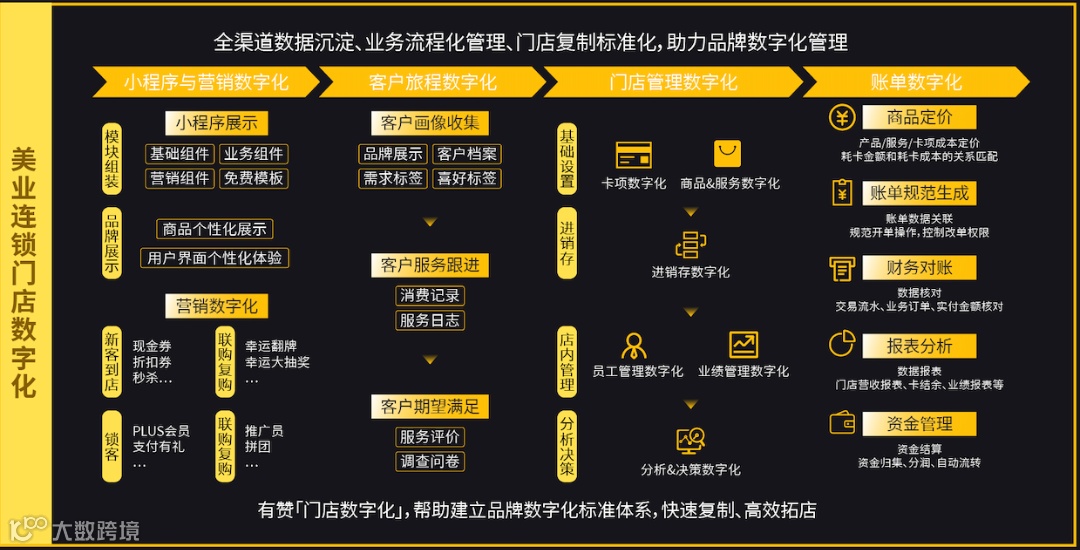 美业连锁门店数字化:帮助建立品牌数字化标准体系,快速复制、高效拓店。