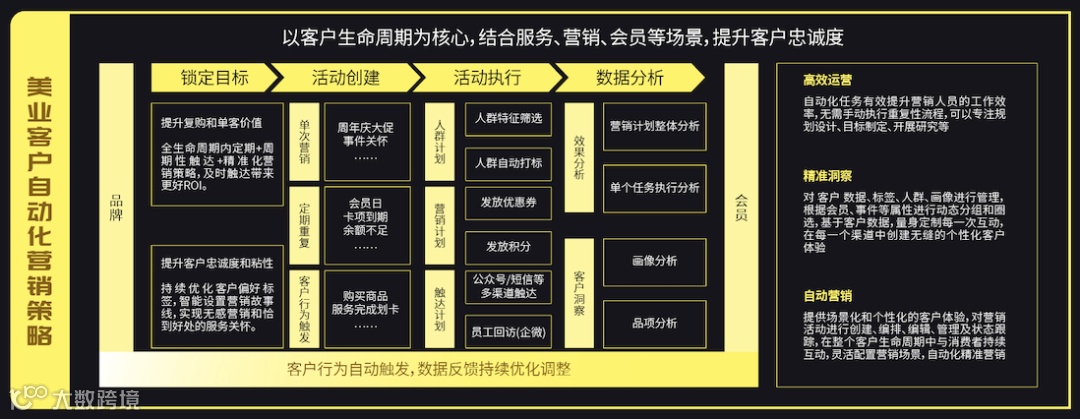 美业CRM自动化客户管理:自动+精准+高效,赋能商家提升客户忠诚度与复购率,提升新客户二次到店转化。 -