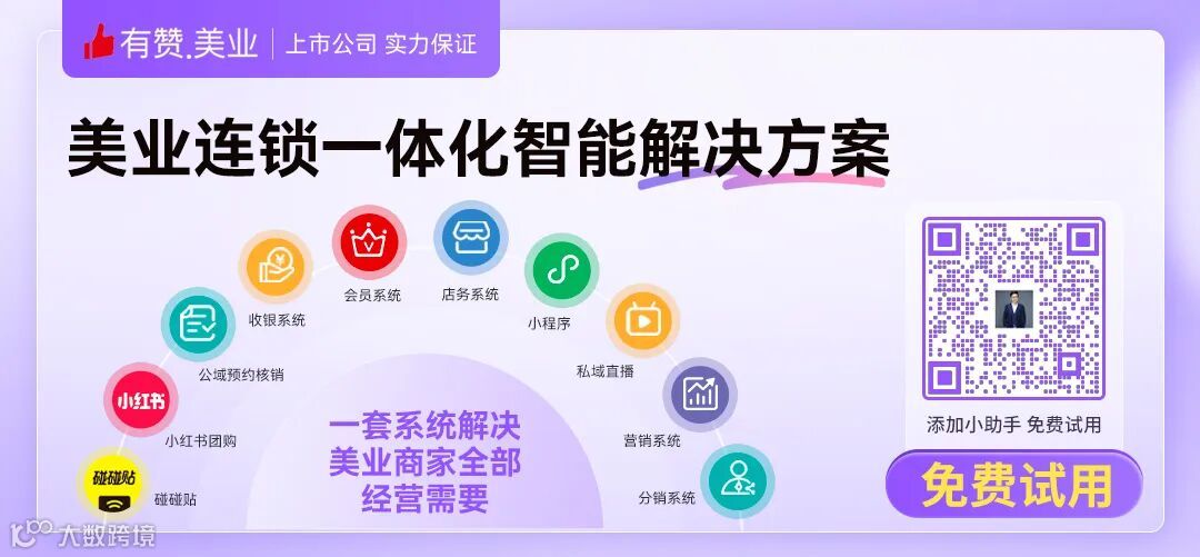有赞美业(右臂):专为美业研发,可以帮您转化承接全渠道的客户数据,实现线上线下数据融合,并进行一站式数字化管理。