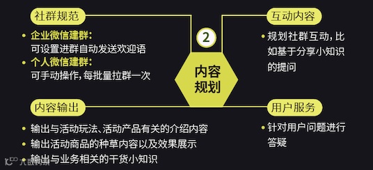内容运营:朋友圈、社群互动、聊天话术、用户信任计划等做内容的要点。 -