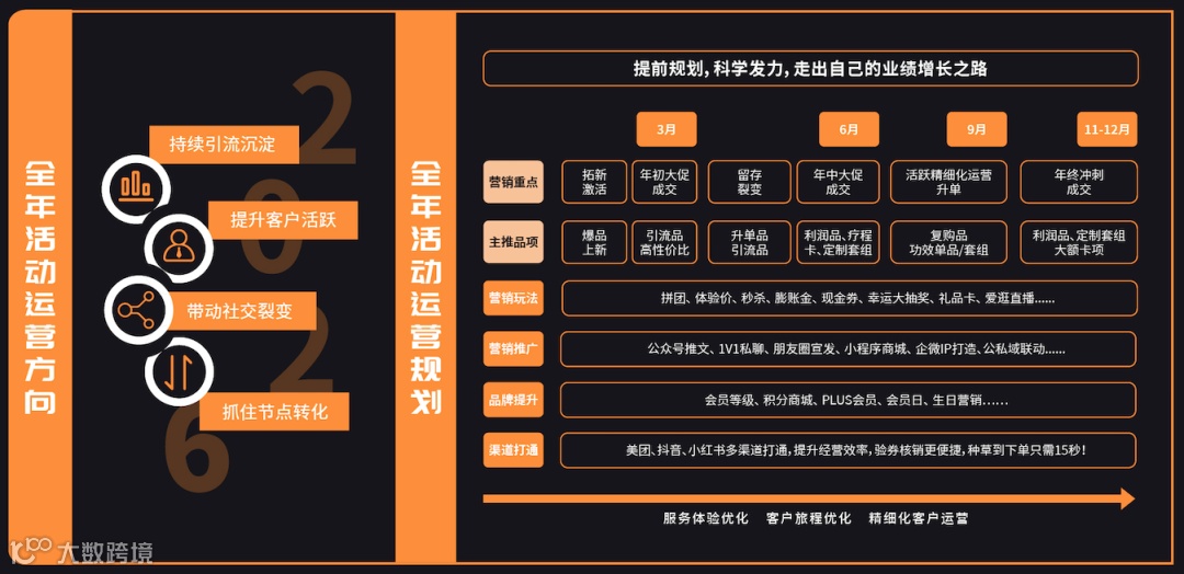 您可以结合咱家的实际情况,选择适合的运营方向,提前规划,并针对性制定营销玩法、营销推广、品牌提升、渠道打通策略。