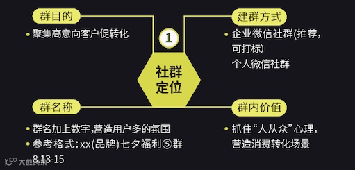 社群定位:从用户定位、产品定位、品牌调研3个方面确定社群定位。 -