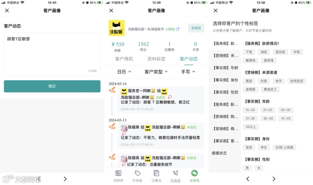 除此之外,还能为每位客户打上精准的肤质标签,如油性、干性、混合性等,以及根据客户的消费行为和偏好,洞察出潜在商机,帮助门店准确地理解门店客户的需求和期望。