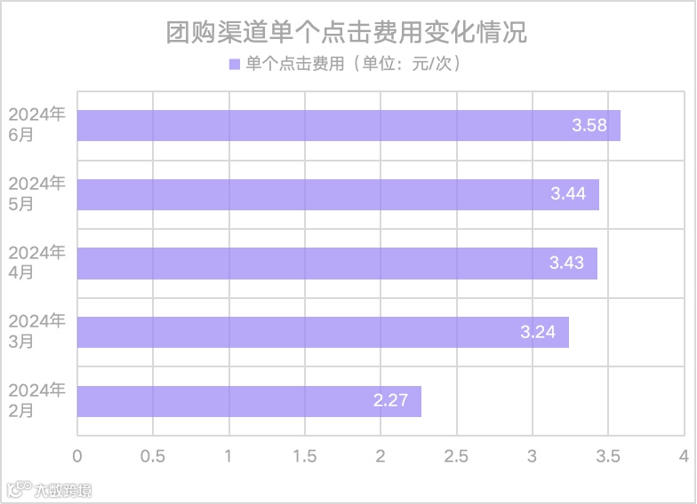 ③公域渠道竞价推广的单次点击成本攀升,单次点击最高5.7元、全渠道平均增长了57.7%;