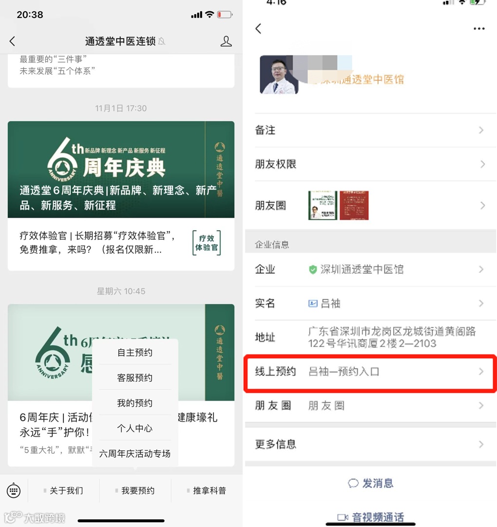 线上所有渠道推广、渠道触点都配对应的预约入口,随时随地想要做项目都有渠道可以预约。
