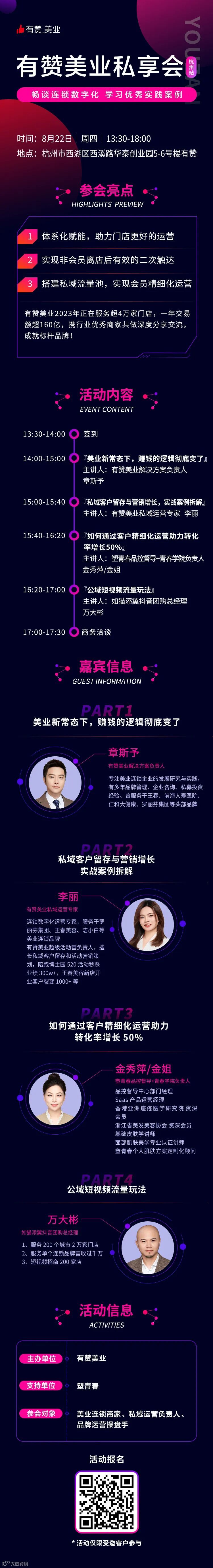 2024年8月22日,有赞美业私享会·杭州站,共话祛痘美肤行业的客户精细化、智能化运营,扫描文末二维码立即报名。
