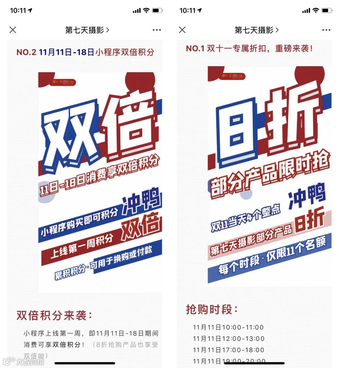 ③推出双十一专属折扣和小程序双倍积分活动,刺激用户下单。