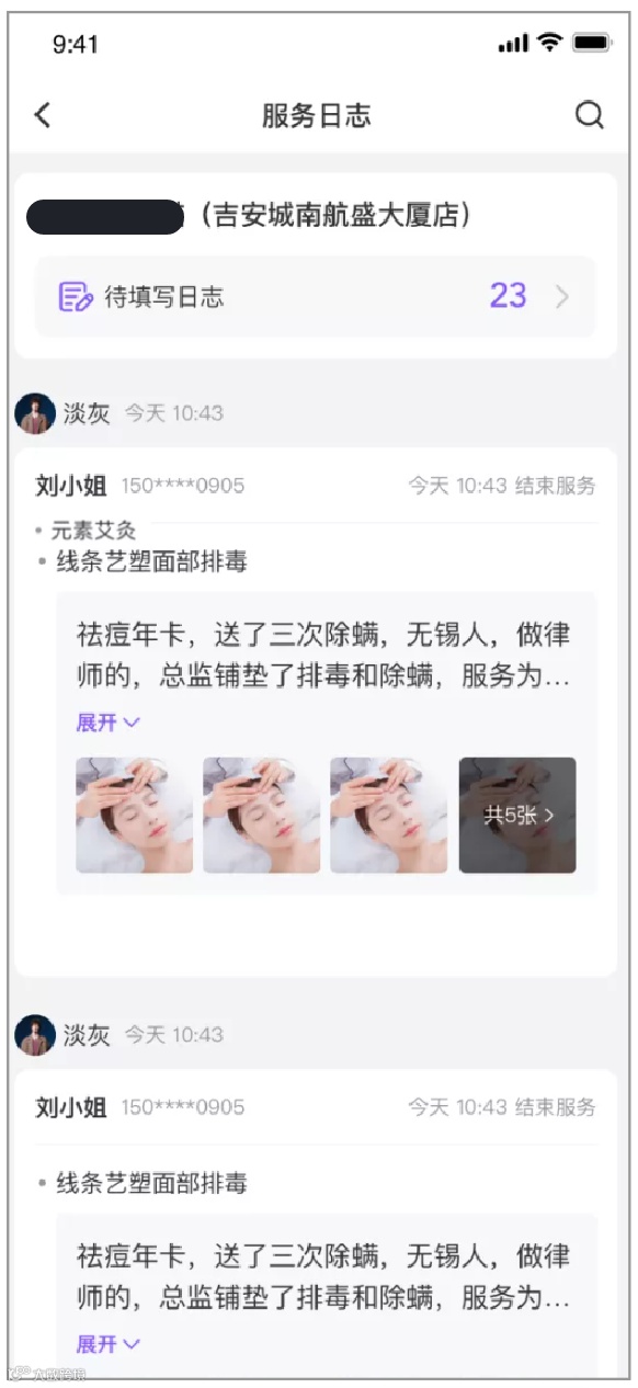 本次优化,未填写的服务日志支持统计查看与待办提醒,可以帮助门店管理者提升日志填写管理效率;已填写的服务日志支持按顾客与服务项目进行搜索筛选,便于门店员工快速了解客户,做好项目的铺垫、引导工作,提升服务质量和体验。