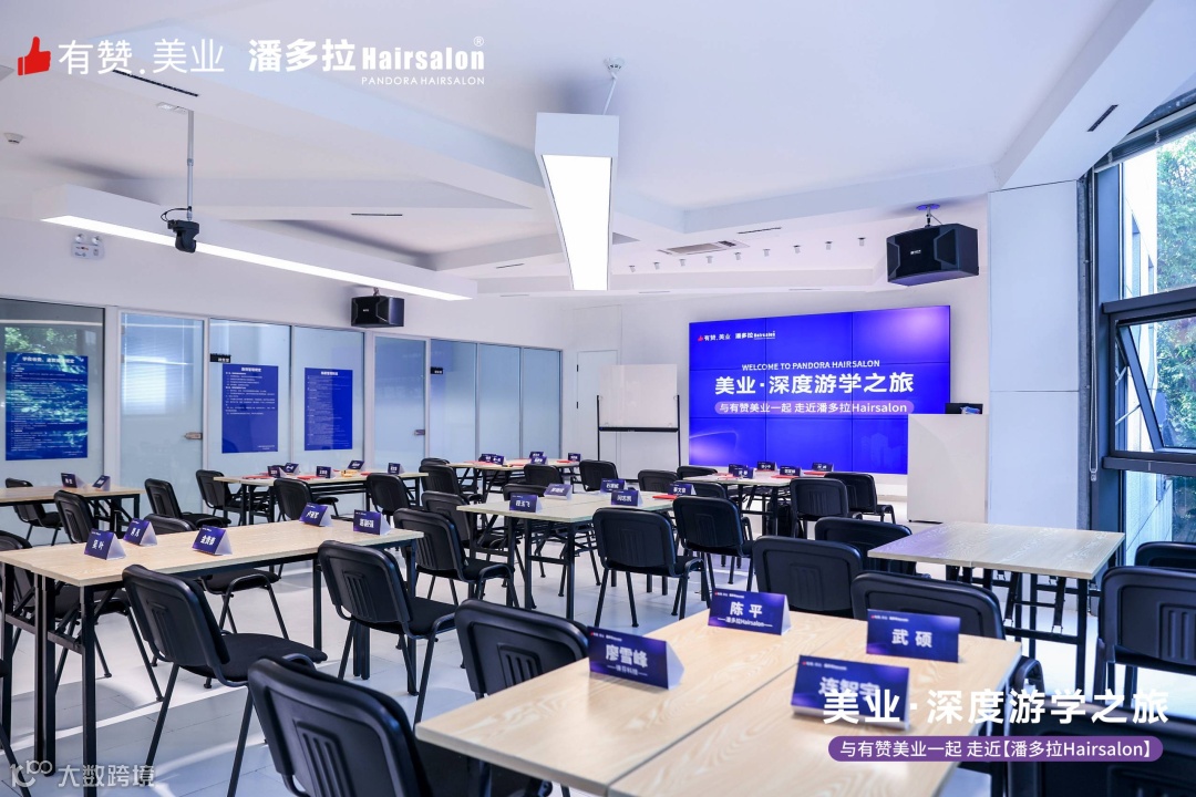 用餐结束,回到潘多拉Hairsalon总部的培训室,这里同时也是他们平时做连锁门店管理、技术培训的地方。