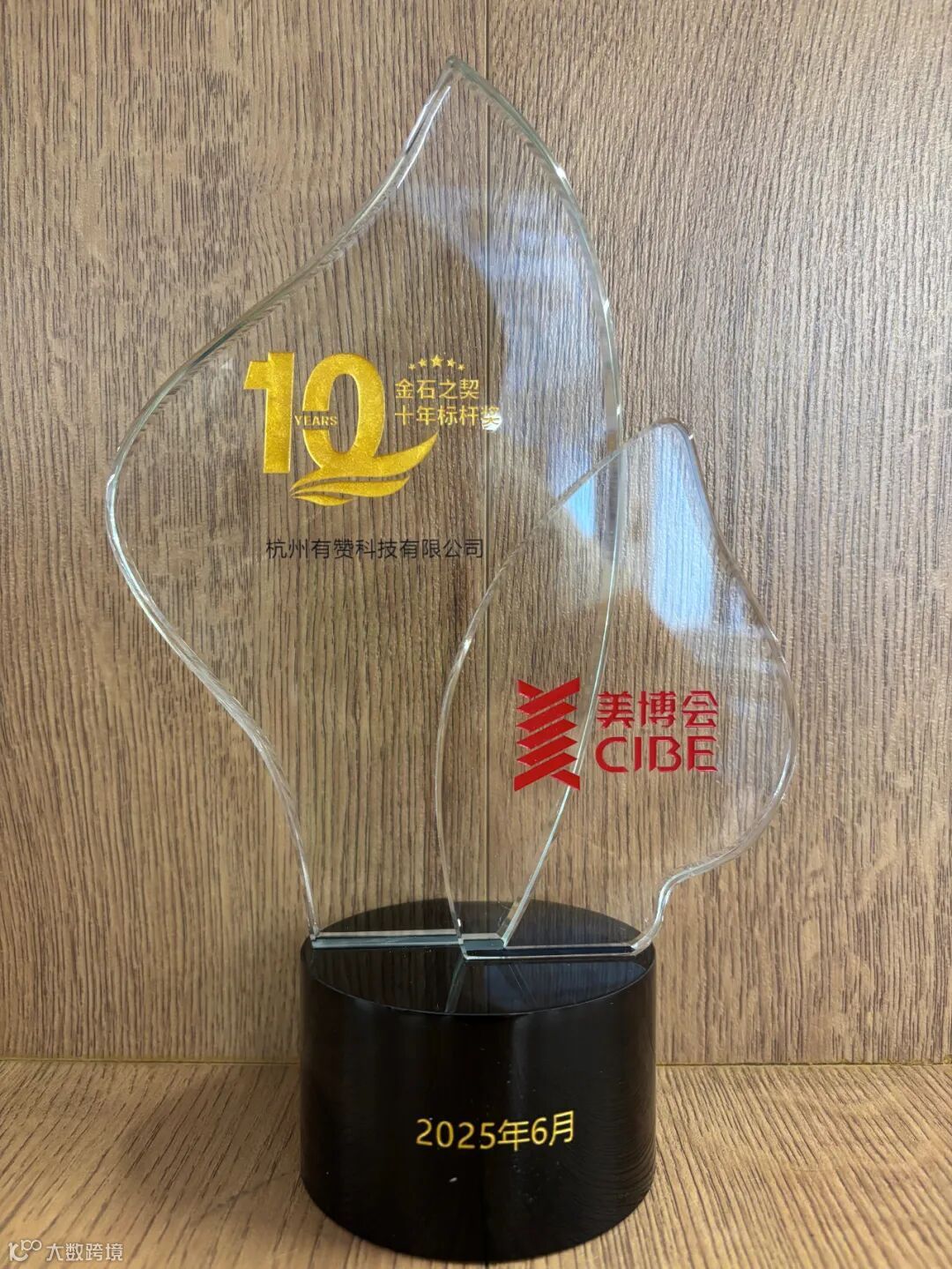 2025年6月24日-26日,第67届中国(上海)国际美博会在上海国家会展中心举办。在本次美博会上,有赞荣获美博会十周年“金石之契——十年标杆奖”。