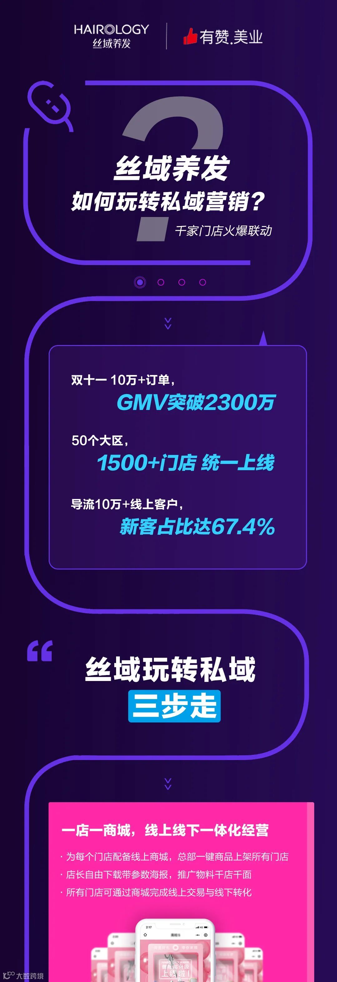 2020收官在即,美业私域营销正当时全国专业养发高端领导品丝域养发今年双十一凭借数字化的私域营销联动全国1500+门店创下了10万+订单、超2300万元的战绩遍布全国的美业连锁品牌