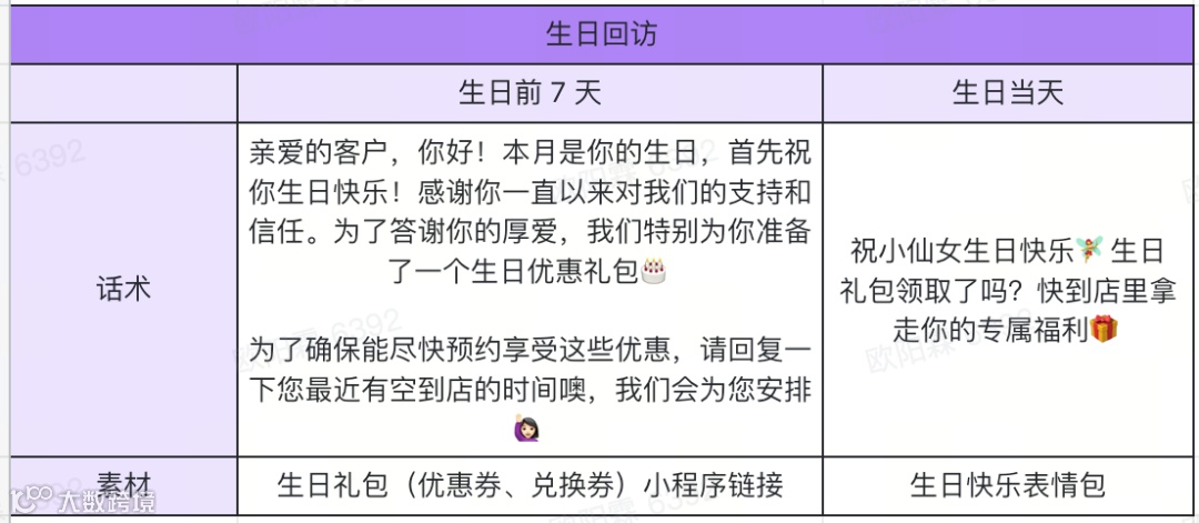 面对熟客,我们一个电话或者发一条微信就能引导客户到店转化,那么对于新客,就要去建立熟悉感和信任,离店的服务问候、个人情况问候和节假日的祝福,必不能少。