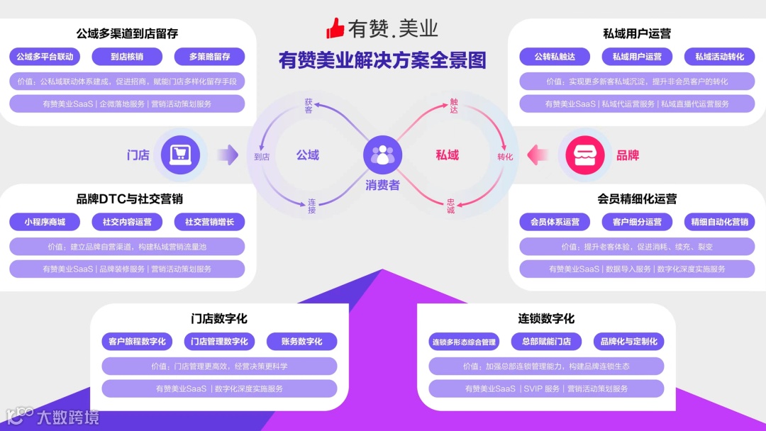 包括:公域多渠道到店留存、品牌DTC与社交营销、门店数字化、连锁数字化、会员精细化运营、私域用户运营。