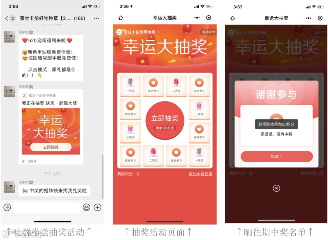 抽奖方式:仅限社群成员仅1次,未中奖还赠送20积分