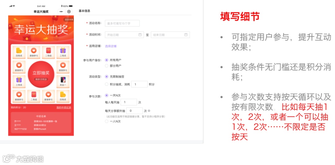 最后,是考虑抽奖的场景,是线上参与,还是线下到店参与。